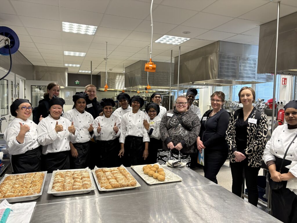 Ravintola- ja catering-alan kansainvälisten opiskelijoiden ryhmä sai vieraakseen edustajia Kattava Cateringilta ja Etelä-Karjalan Osuuskaupasta.
